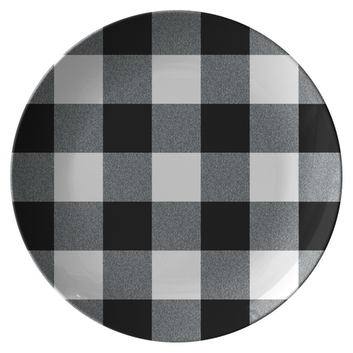 Black and White Buffalo Check Dinner Plates 10" Unbreakable Thermosaf