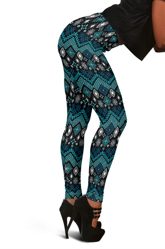 Black and Teal Blue Ethnic Pattern Leggings