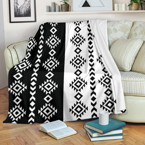 Black and White Ethnic Tribal Pattern Fleece Throw Blanket