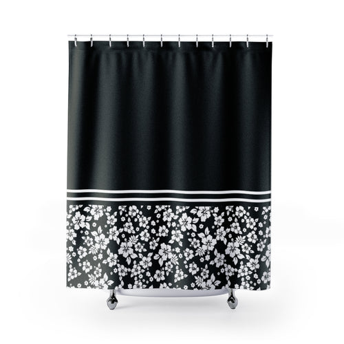 Black and White Hibiscus Pattern Contrast Shower Curtain