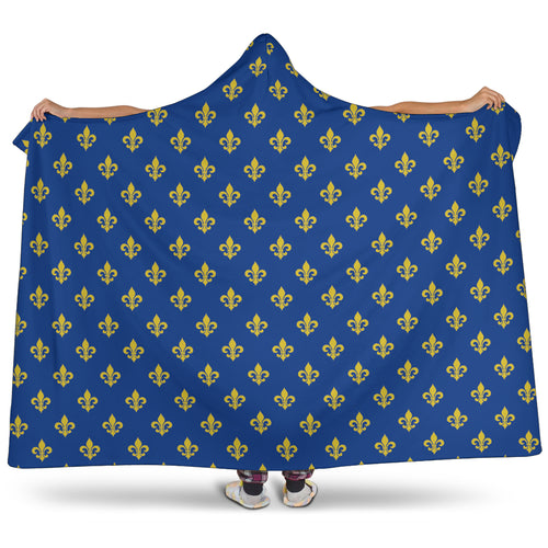 Blue and Gold Fleur De Lis Pattern Hooded Blanket 2