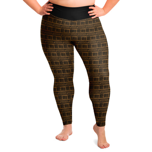 Brown and Black Ethnic Pattern Plus Size Leggings 2X-6X Squat Proof