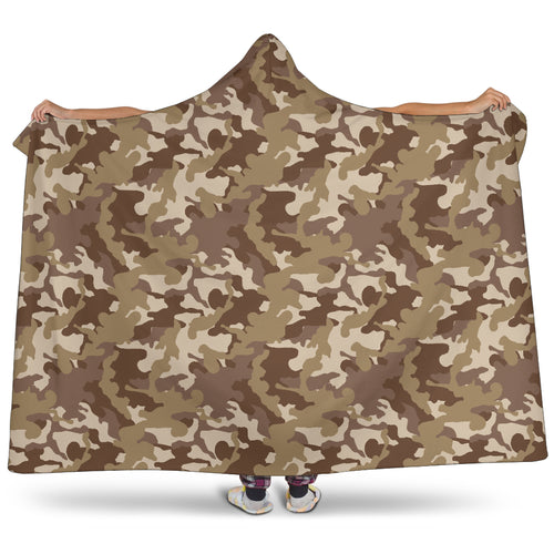 Brown and Tan Hooded Blanket With Tan Sherpa Lining