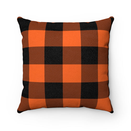 Buffalo Plaid Orange and Black Faux Suede Square Pillow Case