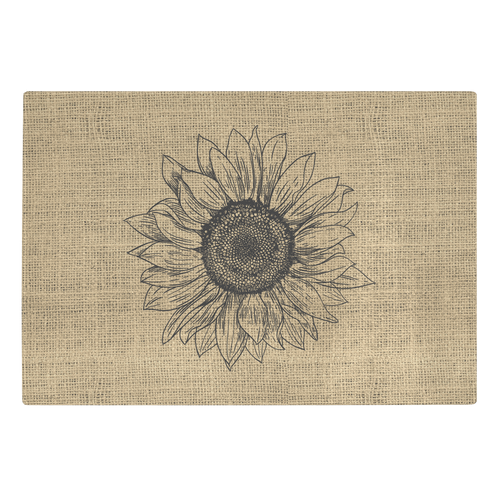 Burlap With Rustic Sunflower Design Outline Tempered Glass Cutting Board