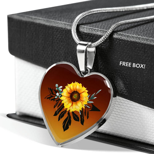 Dreamcatcher Sunflower Burnt Orange Ombre Heart Shaped Pendant Necklace Boho Jewelry Stainless Steel or 18K Gold Plated
