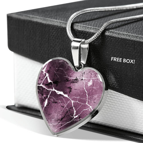 Mauve Marble Design On Stainless Steel Heart Shaped Pendant Necklace