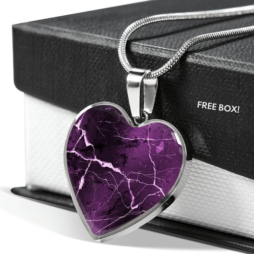 Purple Marble Heart Shaped Stainless Steel Pendant Necklace Gift Set