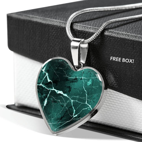 Turquoise Marble Design On Heart Shaped Stainless Steel Pendant Necklace
