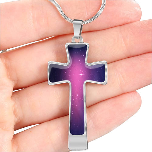 Pink and Purple Galaxy Cross Stainless Steel Necklace Gift Set