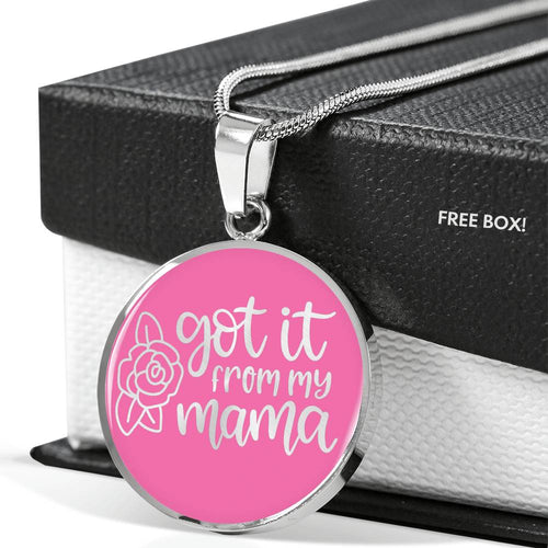 Got It From My Mama Pink Circle Stainless Steel Pendant