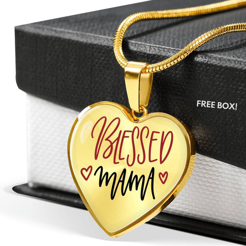 Blessed Mama Pendant Necklace Heart Shaped Stainless Steel or 18K gold with gift box
