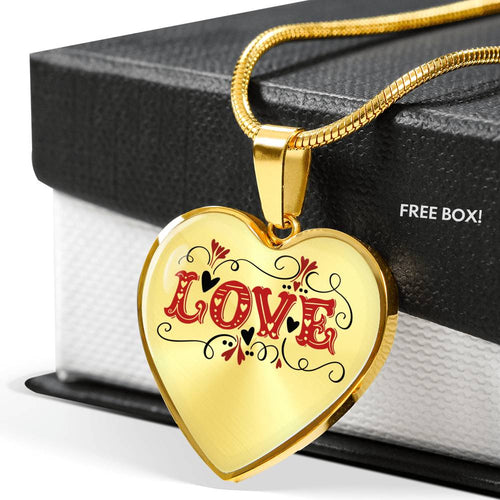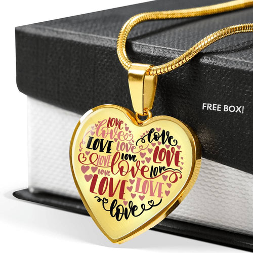 Love Words Heart Shaped Pendant In 18k Gold or Stainless Steel With Necklace and Gift Box