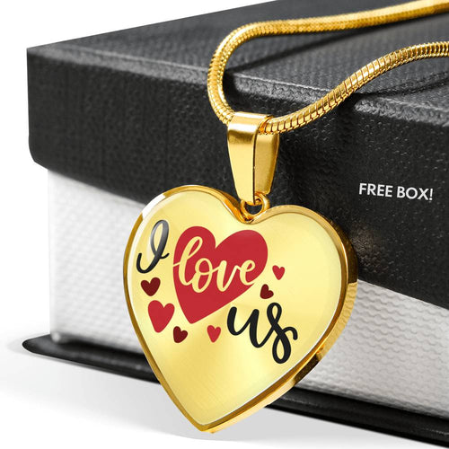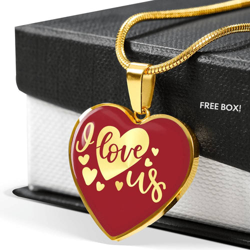 I Love Us Heart Shaped Pendant In 18K Gold or Stainless Steel With Chain and Gift Box