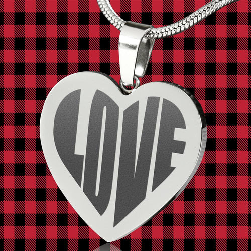 Love Heart Shaped Pendant Engraved Stainless Steel Necklace
