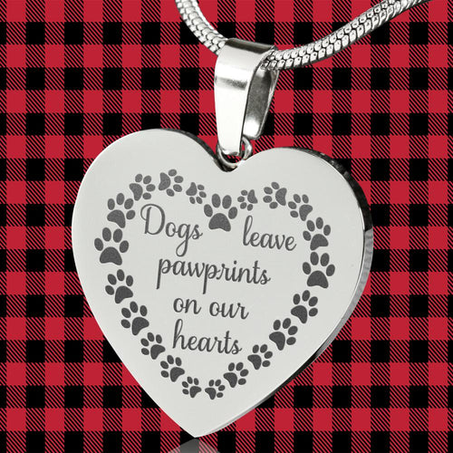 Dogs Leave Paw Prints On Our Hearts Engraved Heart Shaped Pendant Necklace Stainless Steel With Chain and Gift Box