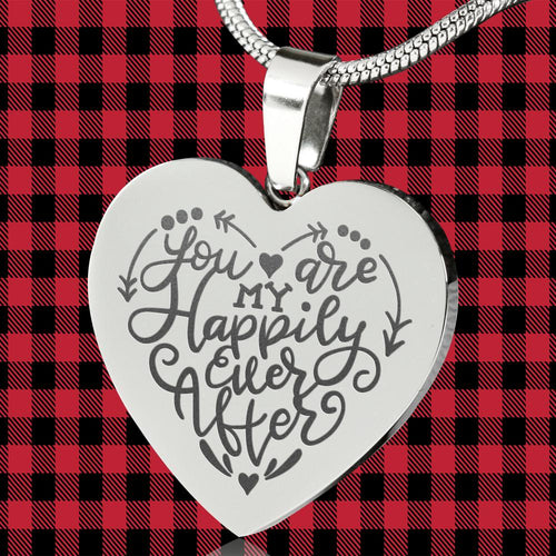 You are my happily ever after heart pendant engraved stainless steel with chain necklace and gift box