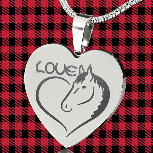 Horse Love Heart Pendant Engraved Stainless Steel With Chain Necklace and Gift Box Valentine's Day