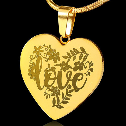Love 18K Gold Engraved Heart Shaped Pendant Stainless Steel Valentine's Day Gift With Necklace Chain and Gift Box